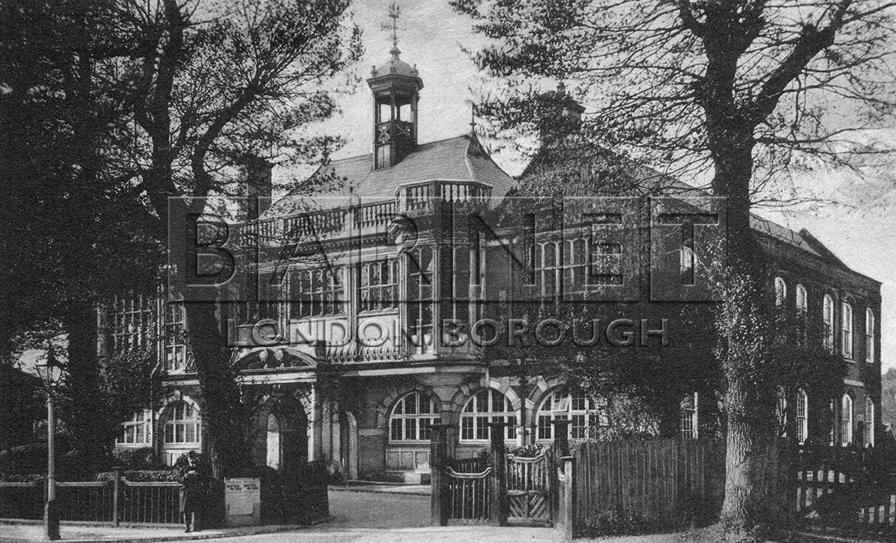 Hendon Town Hall was constructed in 1901, soon after this picture was taken it was undergoing considerable extensions which are now parts of Middlesex University.