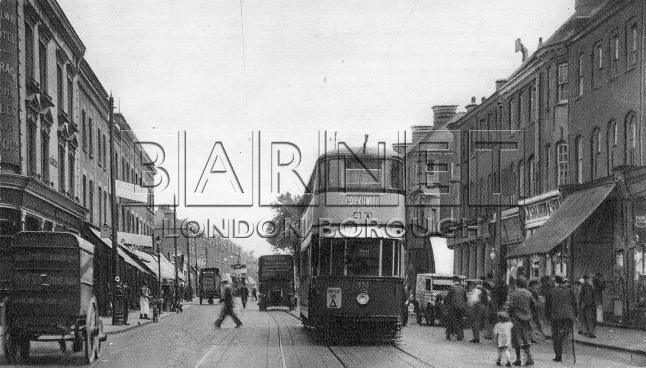 Seen here with a trolleybus. The Railway Hotel public house on the left show that this view is facing north from Nether Street