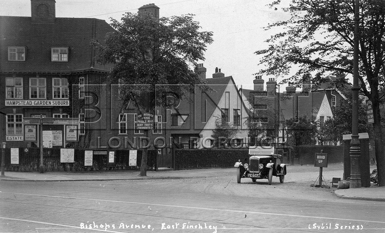 Entrance on High Road East Finchley. Hampstead Garden Suburb Estate office is on the left