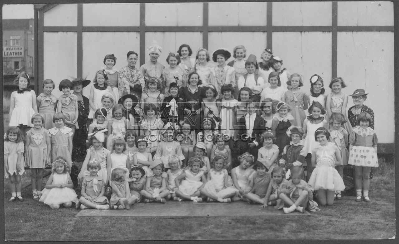 Group photographed outside the Burnt Oak Conservative & Unionist Association Sports Club hut