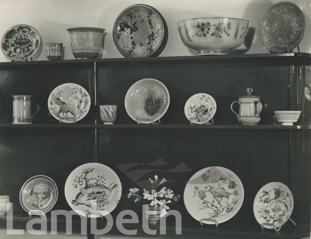 Pottery display in the Doulton studio of Agnete Hoy, Black Prince Road, Lambeth, ID: 2024/22/8