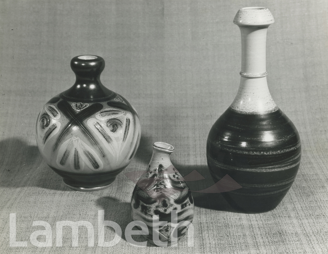 A selection of vases by Agnete Hoy, head of studio at Doulton's, Lambeth. ID: 2024/22/8