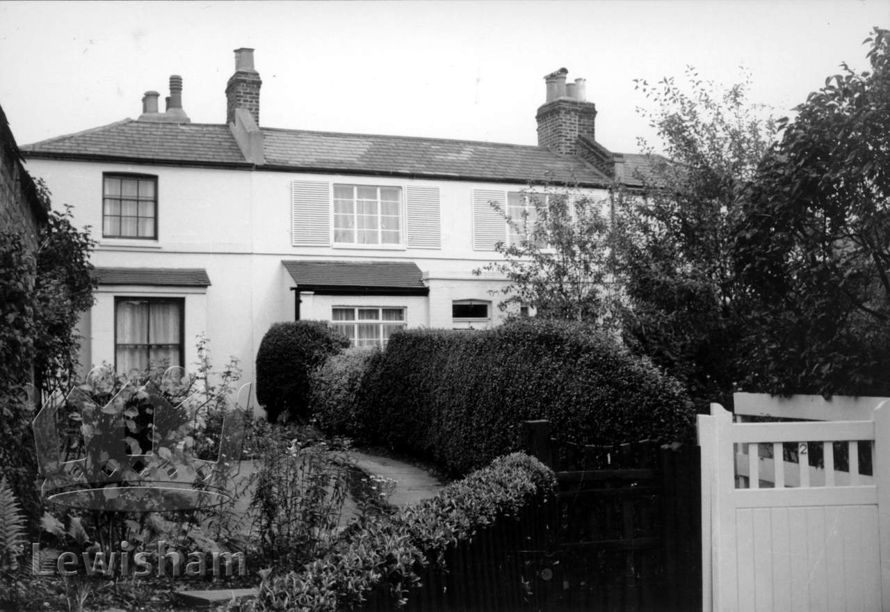 Stanstead Grove is a quiet lane immediately off Stanstead Road, a section of the South Circular Road. The cottages were built c.1855. Clerks figured prominently among the early residents, especially after Catford Bridge station opened in January 1857, giving them easy access to the City of London. Photograph taken on 11th September 1968.