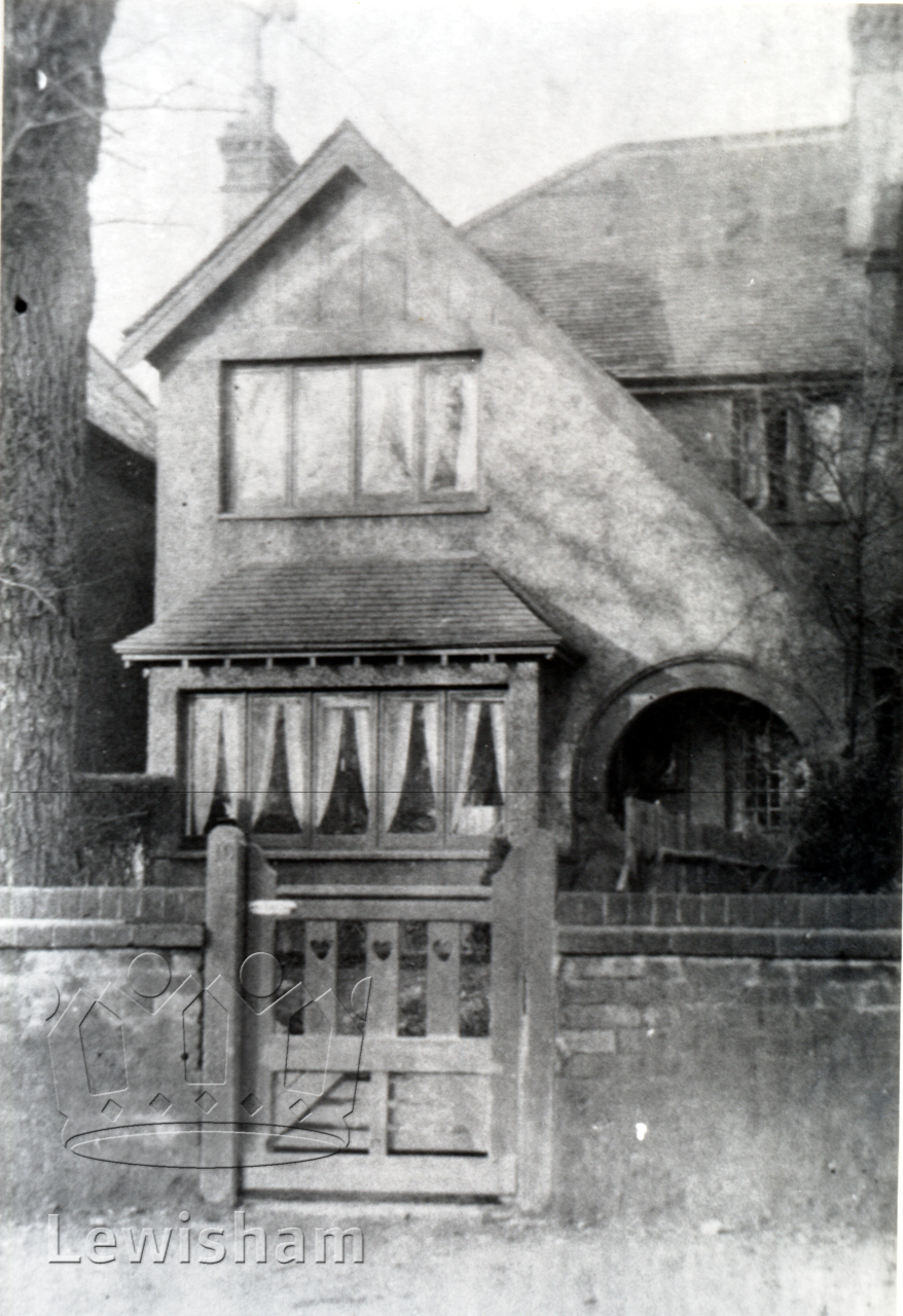 Black and White photo of the front gate and exterior of No.10 The Avenue (later known as Somertrees Avenue)