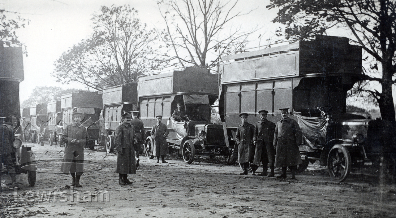 Army Service Corps buses (probably Grove Park), en route for France between 1914-1918.