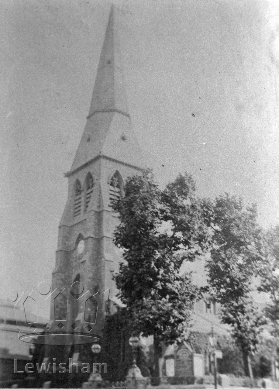 Black and White photograph showing exterior of Congregational Church, Lewisham High Road (Lewisham Way)