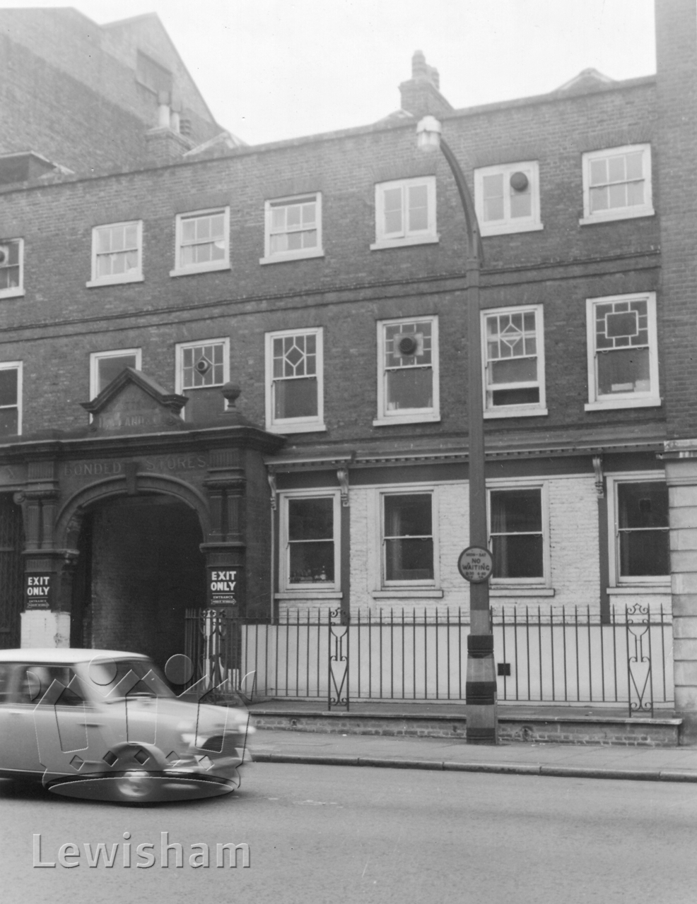 Black and White photograph of exterior of Deptford Bridge Distillery, looking south (map ref 374769)