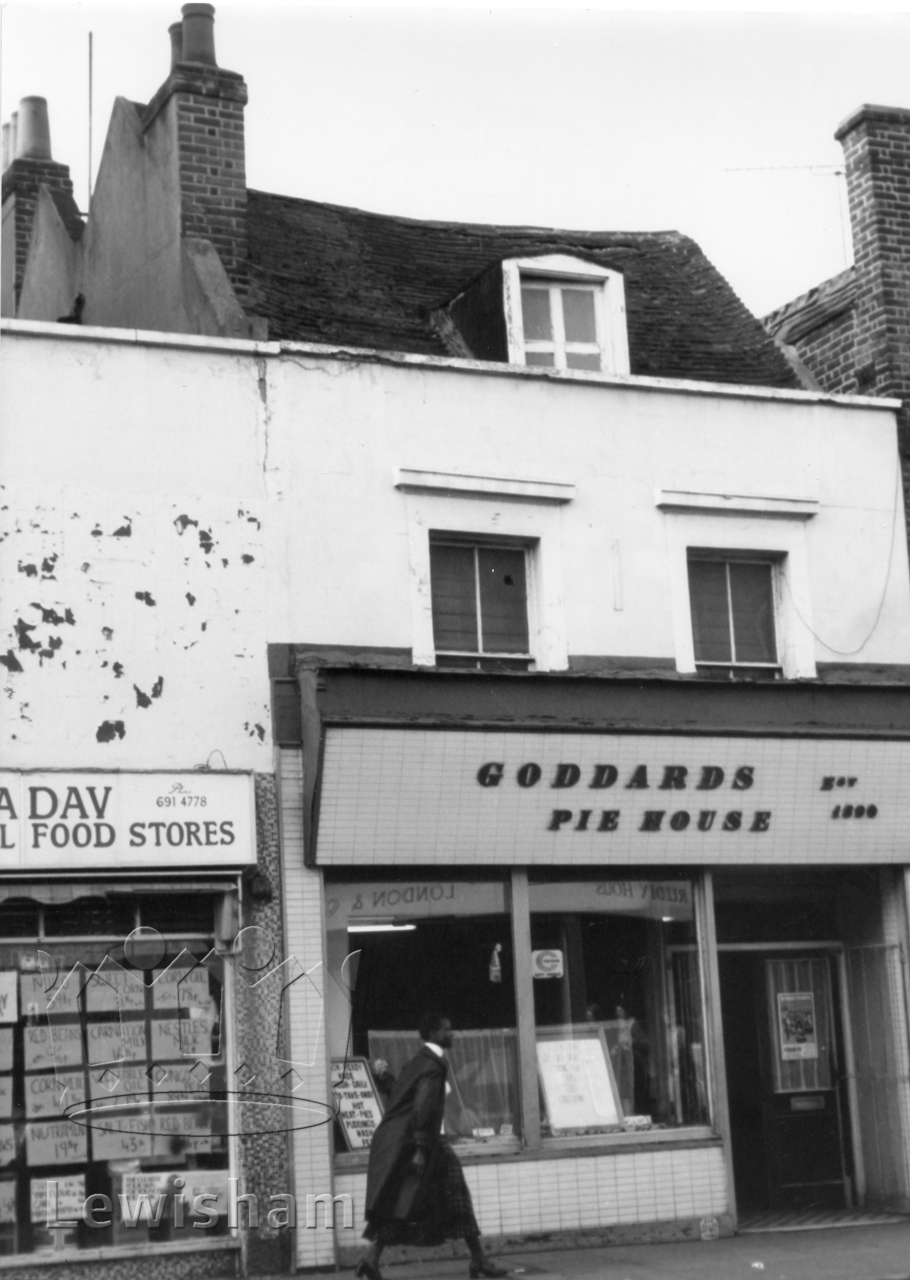 Black and White photograph showing exterior of 203 Deptford High Street, showing roof and dormer window
