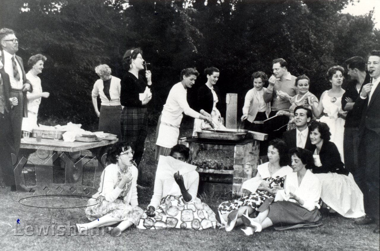 Black and White photo of a barbecue at Grove Park Hospital, 1960