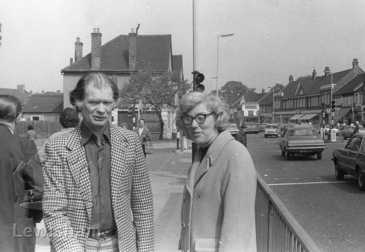 Black and White photograph showing view of Junction of Bromley Road and Downham Way, 1970s