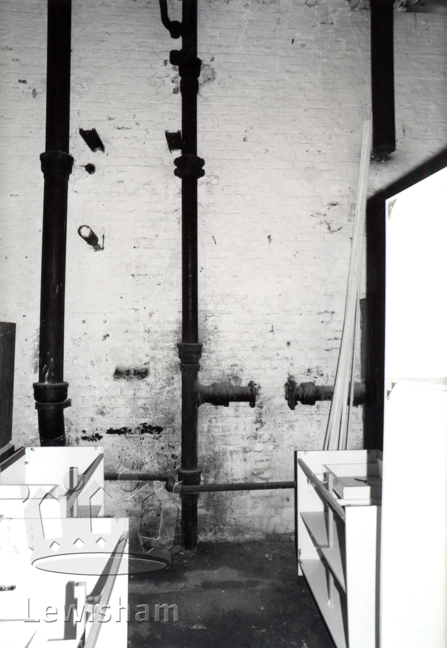 Black and White postcard showing the ground floor east wall of the water tower, 4/7/1980