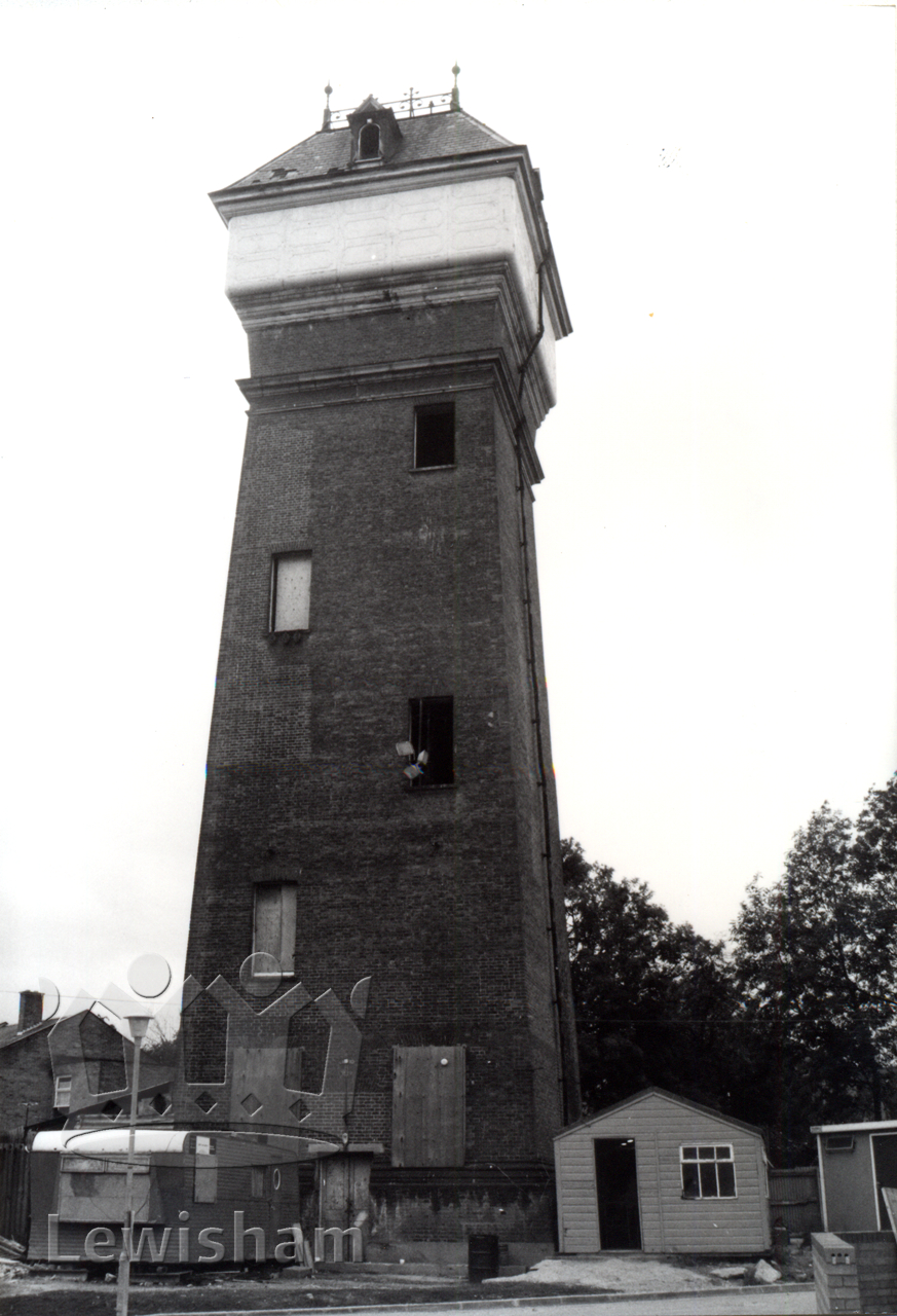 Black and White postcard showing the water tower at Ladywell Lodge, 4/7/1980