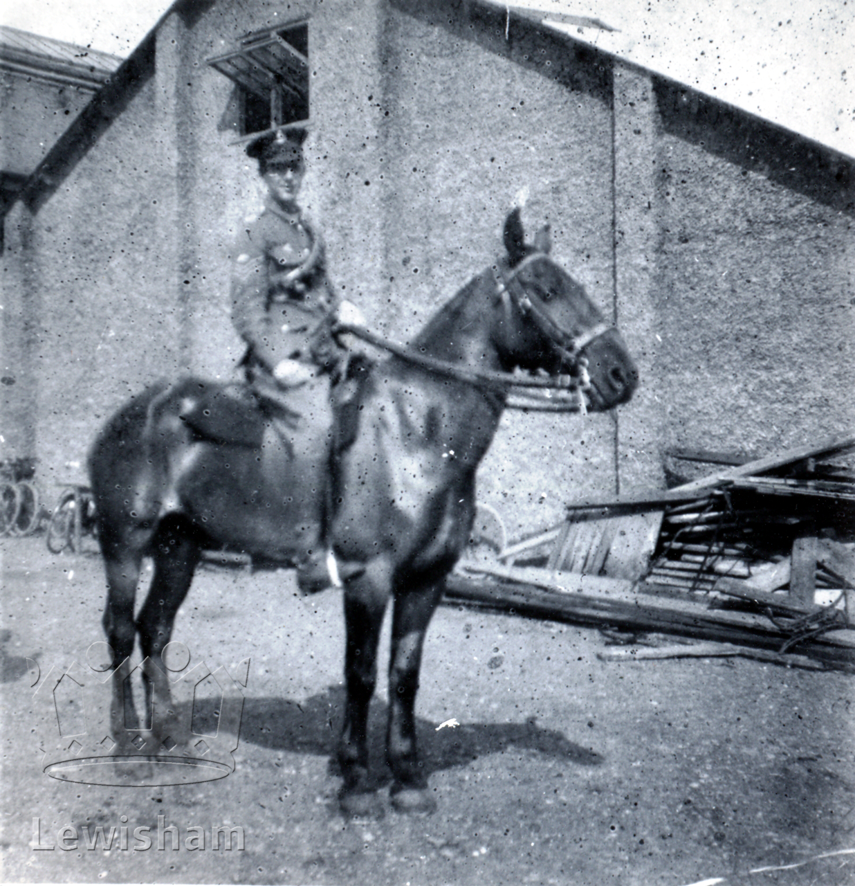 Sgt. Barlow of 2nd/4th Communication Column on horseback and in uniform at Ennersdale Road between 1915-1919 during World War One.