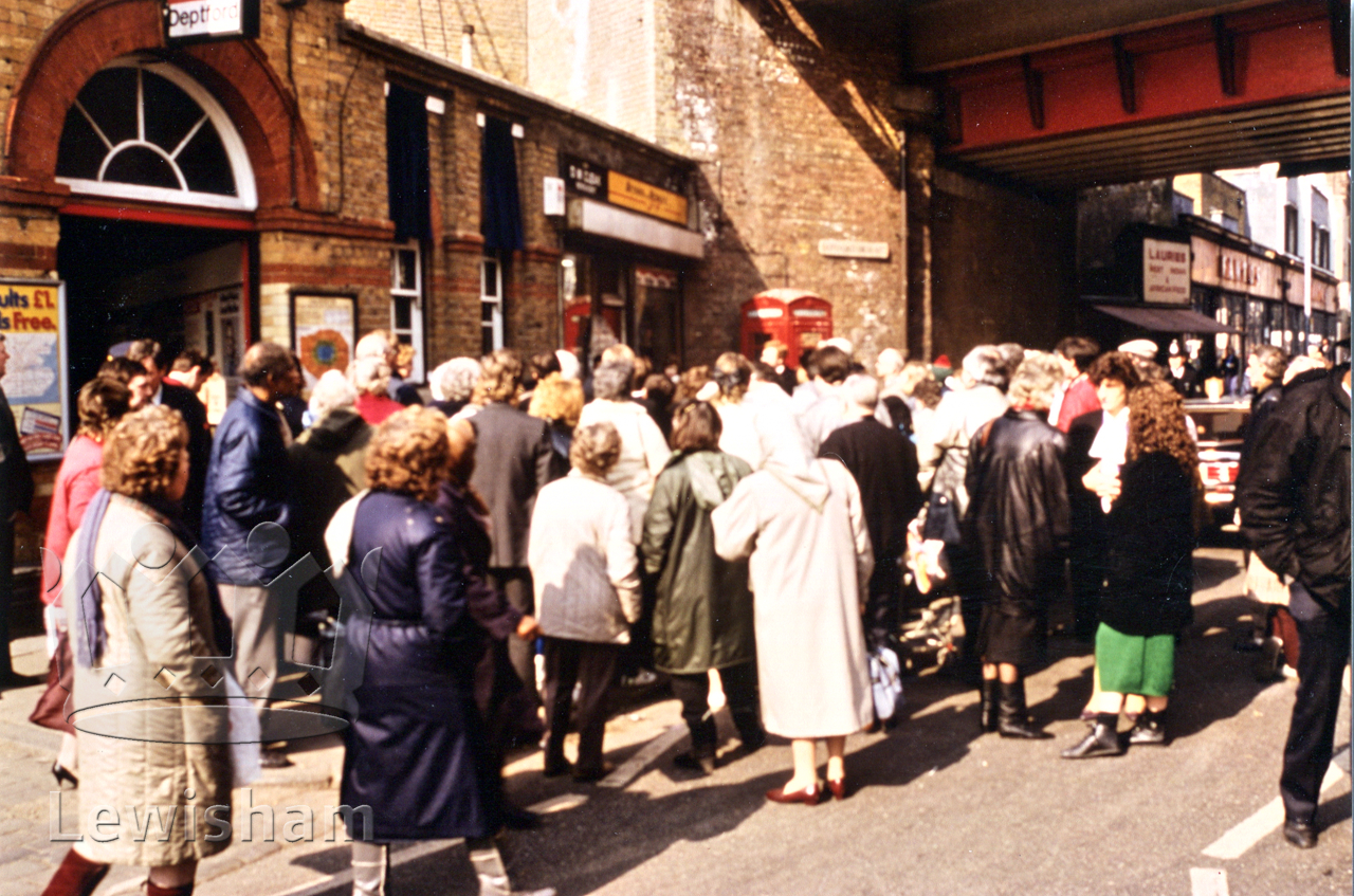 colour photograph showing crowd before unveiling of London & Greenwich Railway plaque 14/3/87