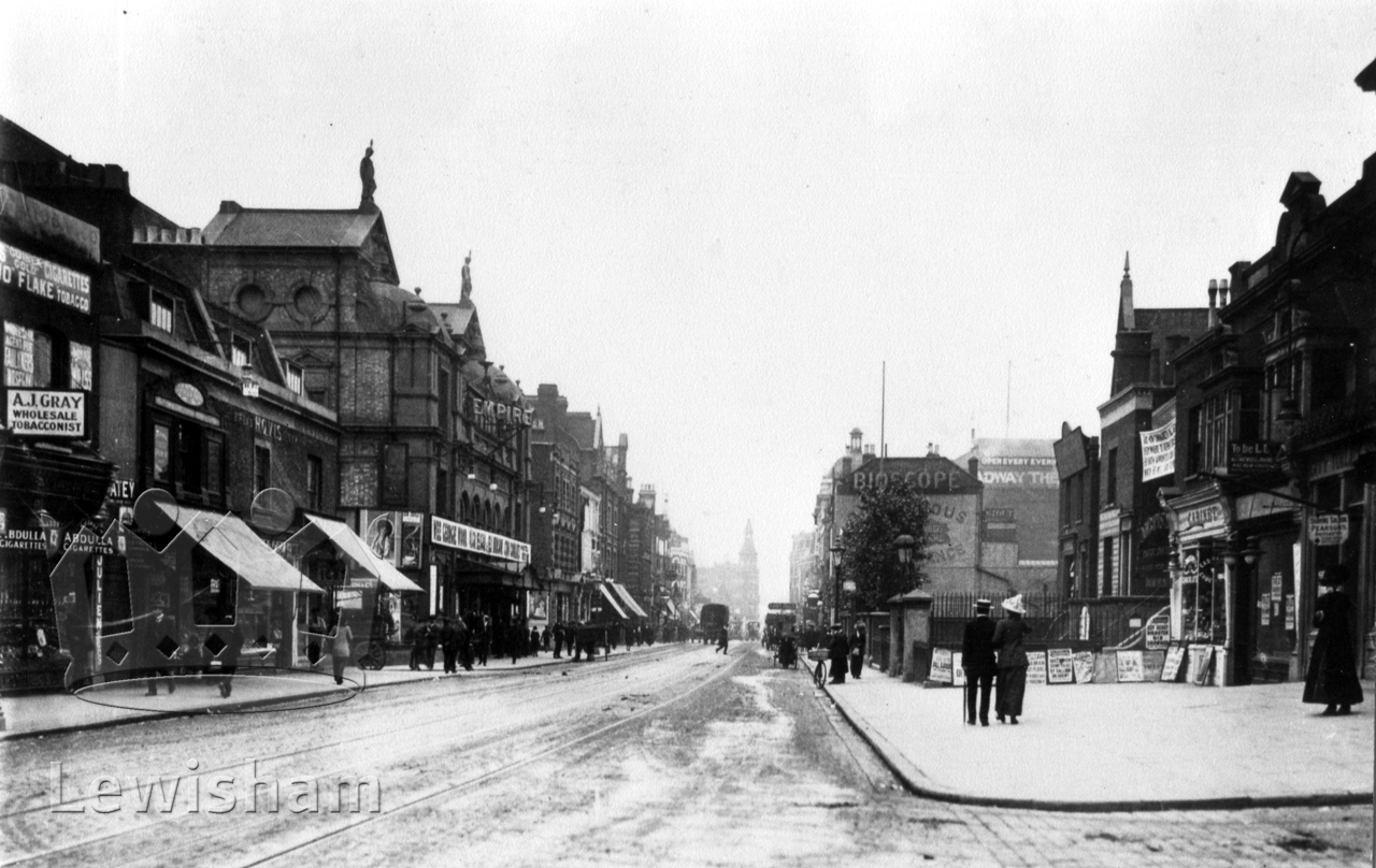 Black and White photograph showing view of New Cross Road, 1912, looking east