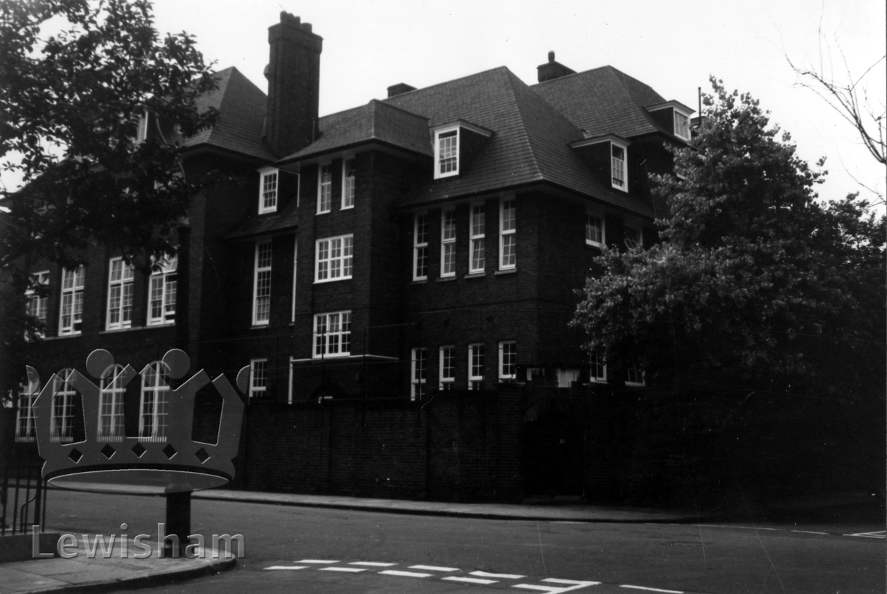 Black and White photograph showing exterior of Ravensbourne School, Albyn Road, 21/8/1970