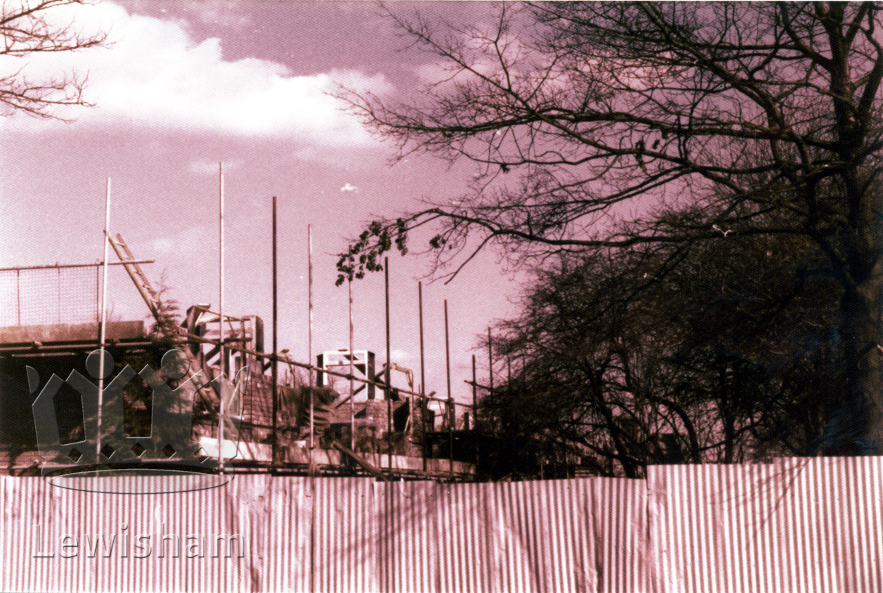 Colour photo of the building site of 400 new homes constructed by the London Borough of Lewisham, bounded by Baring Road, Chinbrook Road and Lemay Avenue, 1979