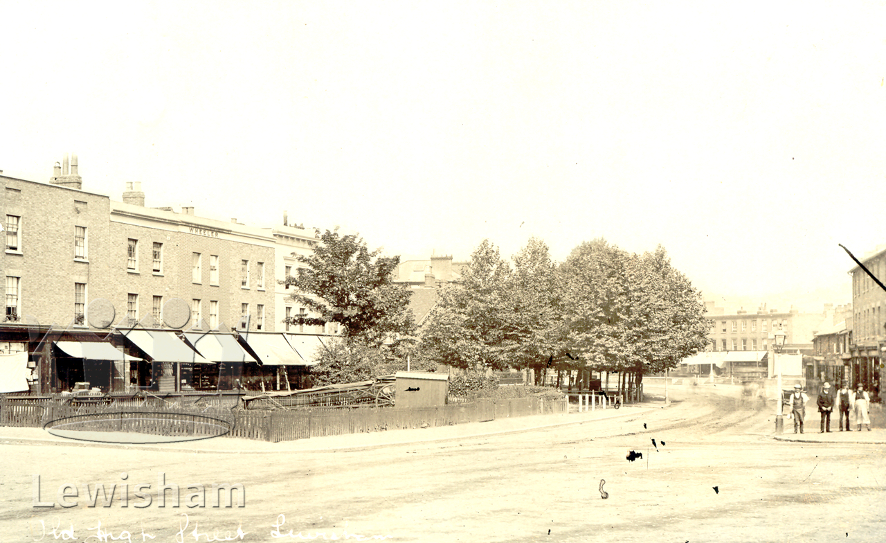 Sepia Photograph of Site of present street market. Tradesmen shown wearing work aprons. C. 1910
