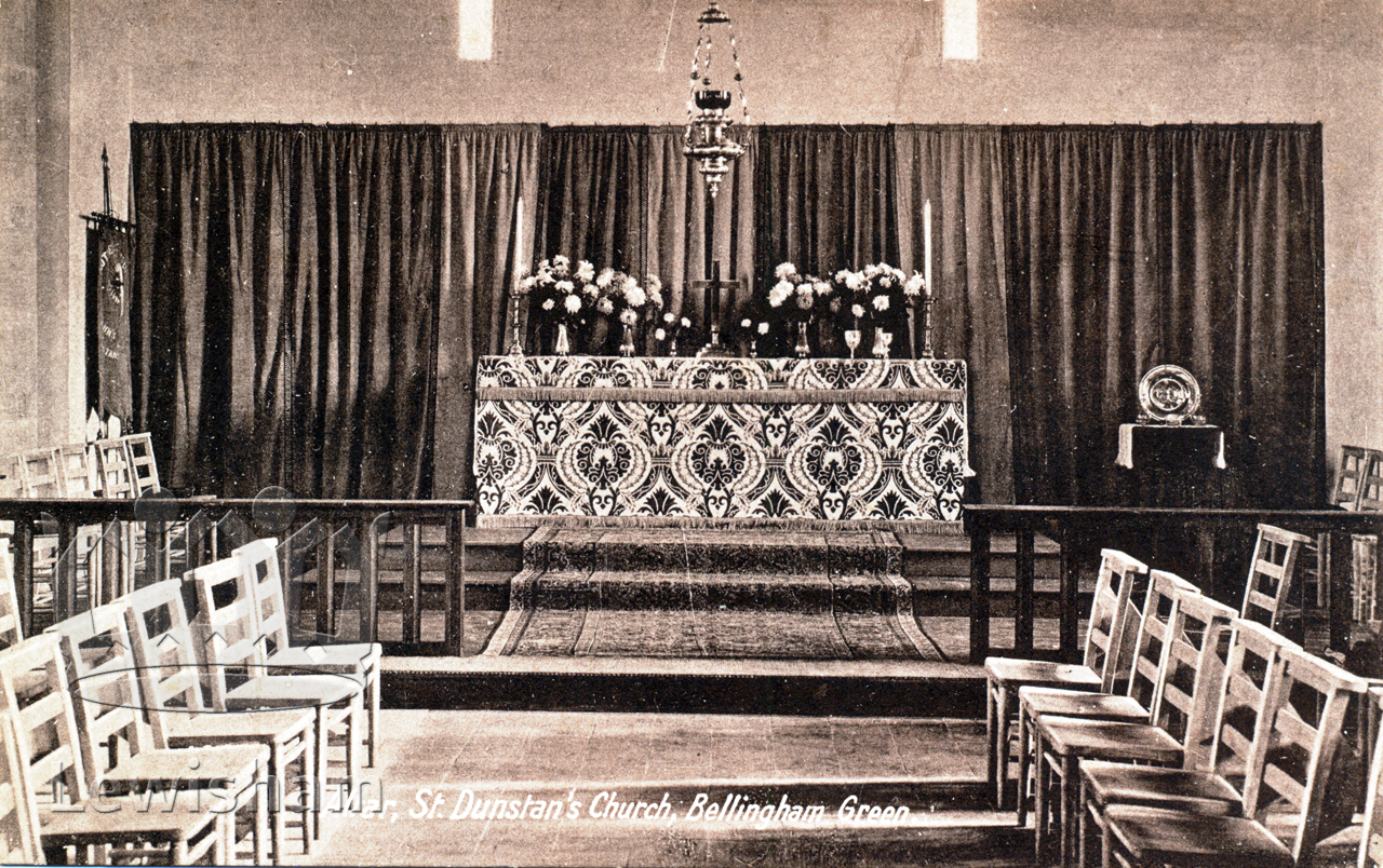 St. Dunstan’s Church, Bellingham Green. Interior: view of altar.