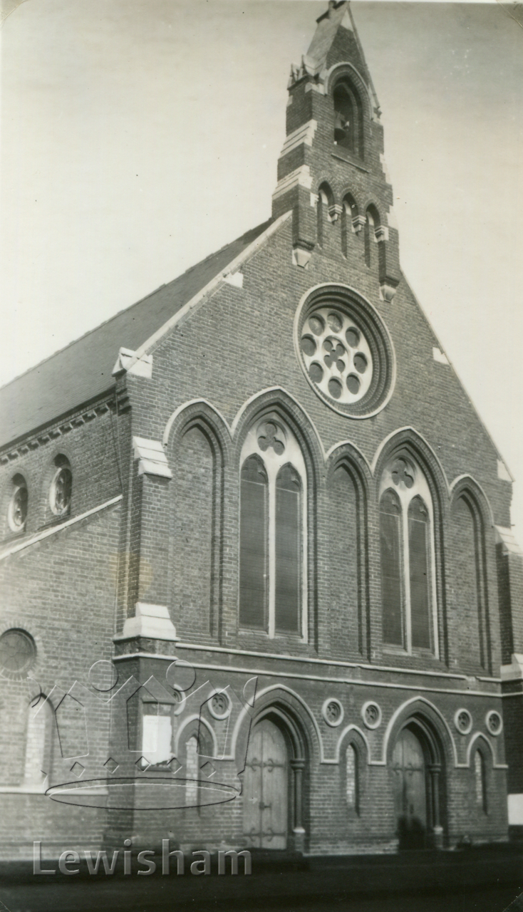 Black and White photograph showing exterior of St Mark's Church, Edward Street, Amersham Vale. Built 1883; Bombed 1942 [amalgamated with St Paul]