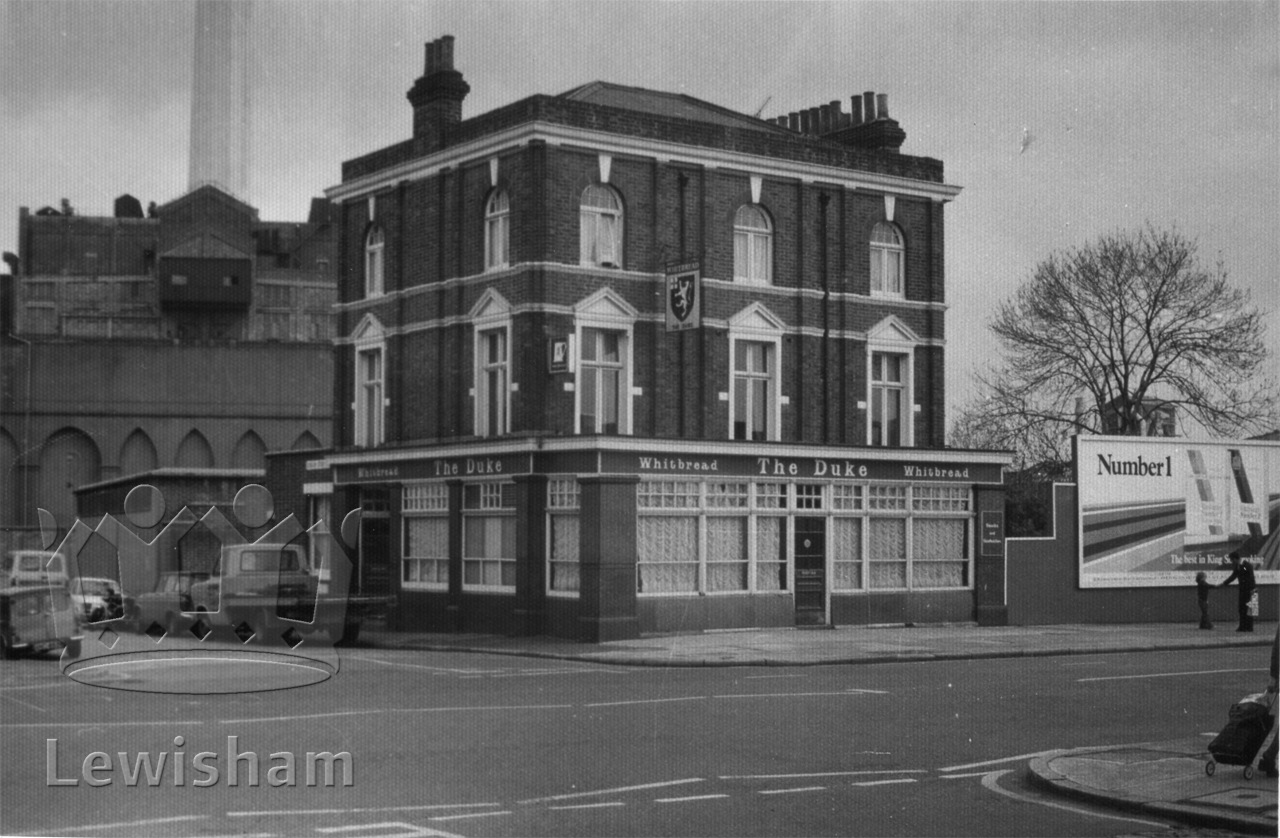 Black and White photograph showing exterior of the Duke, Creek Road, on the corner of Gonson Street
