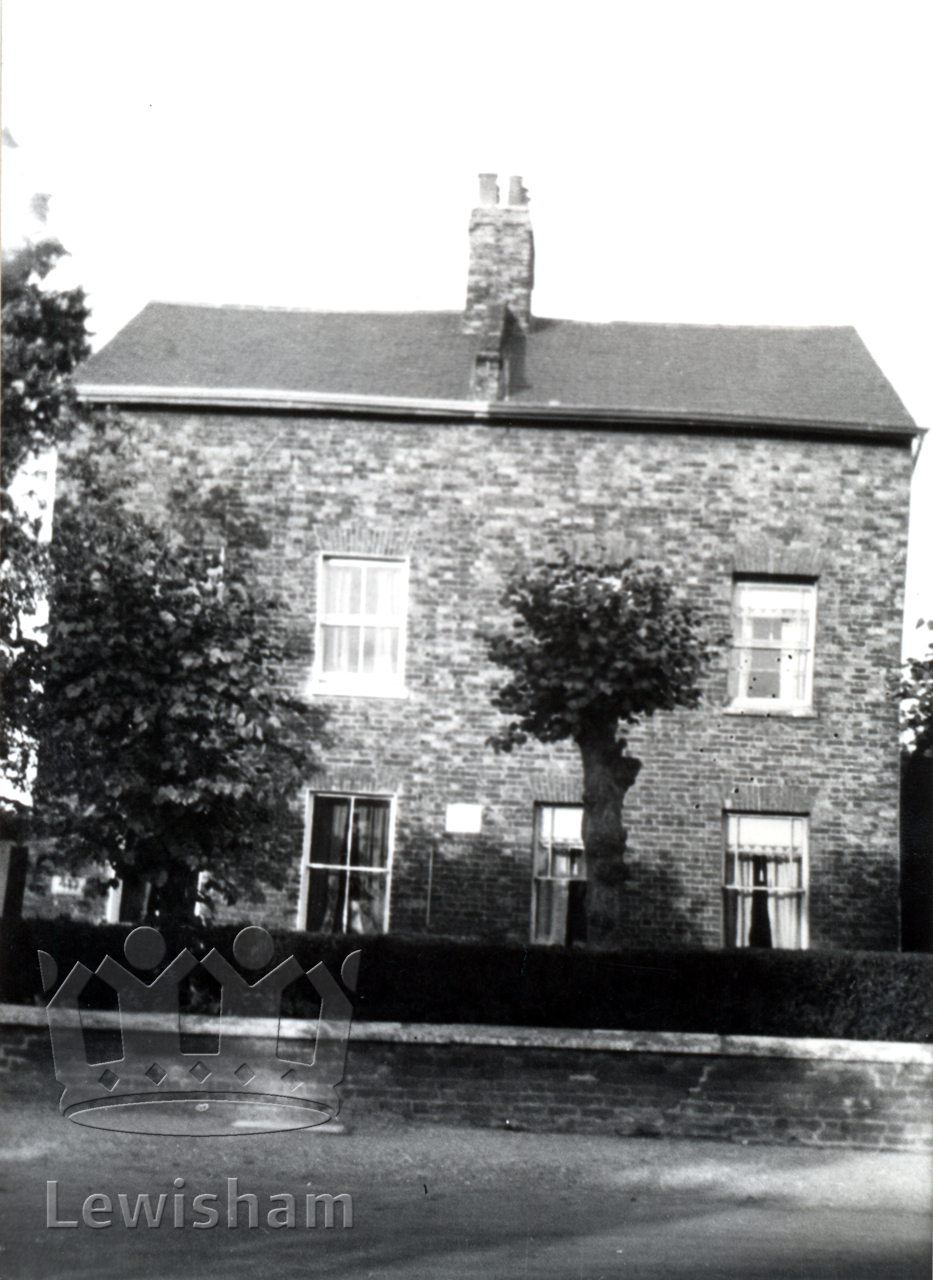 Black and White photo of the exterior of 157-159 Burnt Ash Hill, 1930s. These buildings have since been demolished: the site is next to Ash Hill Garage on the south side
